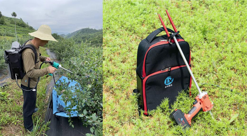 与贵州省机电研究设计院合作,研发适用于山地丘陵的便携式蓝莓采摘机,采摘效率为人工的5倍以上,可实现选择性采收,有效解决劳动力短缺与人工成本高的问题。